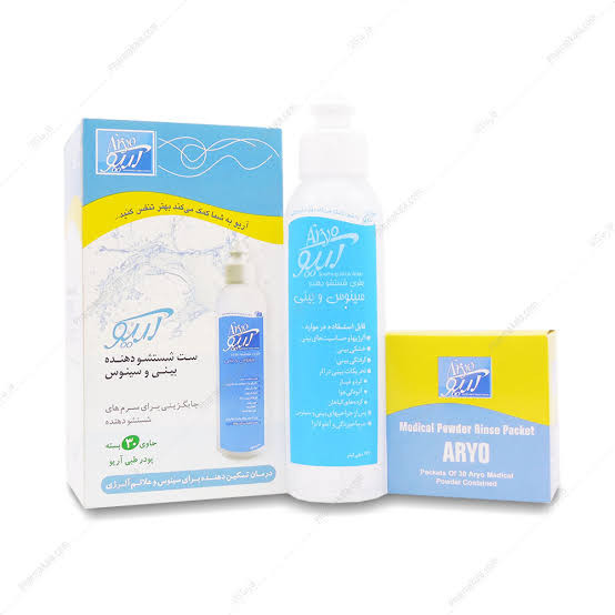 ست شستشو دهنده بینی و سینوس آریو یکی از بهترین و ضروریترین ابزار برای شستشو بینی می باشد. به کمک ست شستشو آریو، می توان تمامی قسمتهای درونی بینی را تا انتها شستشو داد و راحتتر نفس کشید. ست شستشو بینی آریو شامل 30 عدد پودر طبی آریو، بطری با حجم 177 میلی لیتر می باشد. پودر طبی شستشو بینی و سینوس آریو موجب میگردد تا ترشحات و باکتری ها از ناحیه سینوس و بینی خارج شده، گرفتگی بینی رفع شده و در نتیجه تنفسی راحت تر و خوابی آرام تر را موجب گردد. شستشوی مداوم بینی با التیام (درمان) التهاب مخاط بینی و سینوس باعث تقویت سیستم ایمنی و دفاع طبیعی بدن در مقابل بیماری ها می باشد.