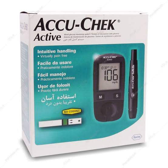 دستگاه تست قند خون اکتیو Active اکیو چک مناسب برای کنترل و سنجش دقیق میزان قند خون توسط شخص با کاربری خانگی می باشد. این دستگاه برای انجام تست به مقدار خون اندکی نیاز دارد و نتیجه تست را در 5 ثانیه نشان می دهد. همچنین به طور میانگین قند خون را در 7، 14، 30 و 90 روز ثبت می نماید و دارای حافظه با گنجایش 500 نتیجه و پورت USB برای انتقال دادن داده ها می باشد.