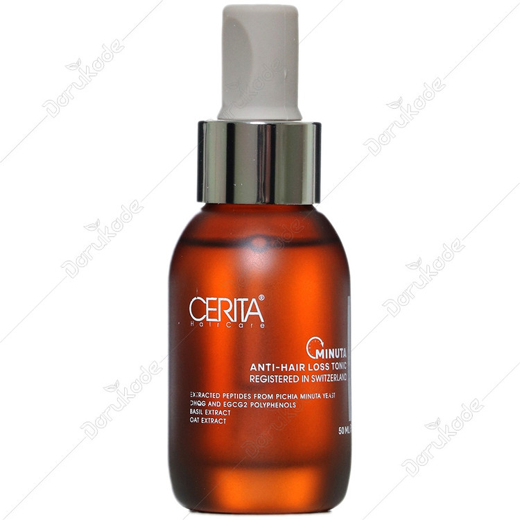 تونیک مینوتا سریتا بر پایه پلی فنول های DHQG و EGCG2، عصاره ریحان و عصاره جو دوسر فرموله شده است. این تونیک با تنظیم چرخه رشد مو و افزایش گردش خون به پوست سر، مانع از ریزش تارهای مو می شود. تونیک ضد ریزش مو سریتا از طریق مهار فاکتورهای التهابی، به تسکین پوست سر کمک می کند.